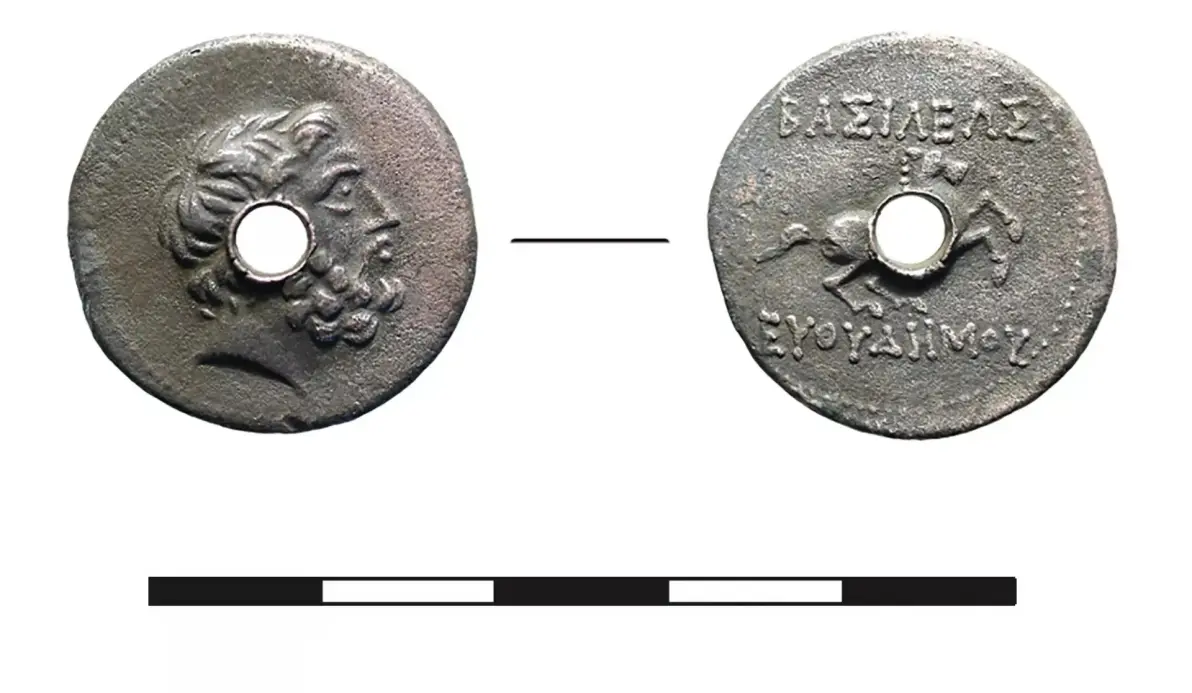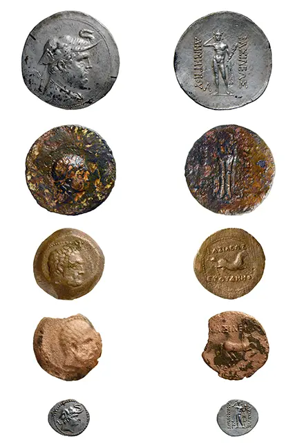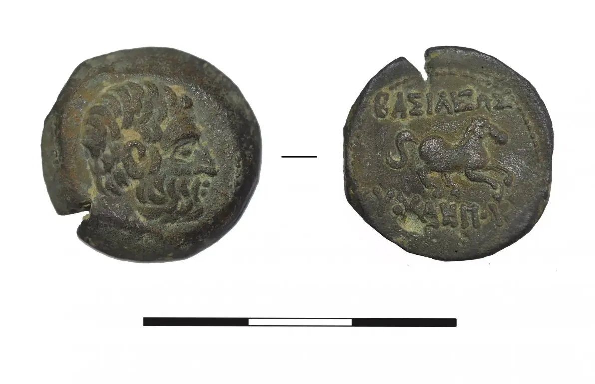 阿加索克勒斯的铜币 公元前 190–165 年 e. 乌兹别克斯坦共和国科学院艺术史研究所,塔什干。