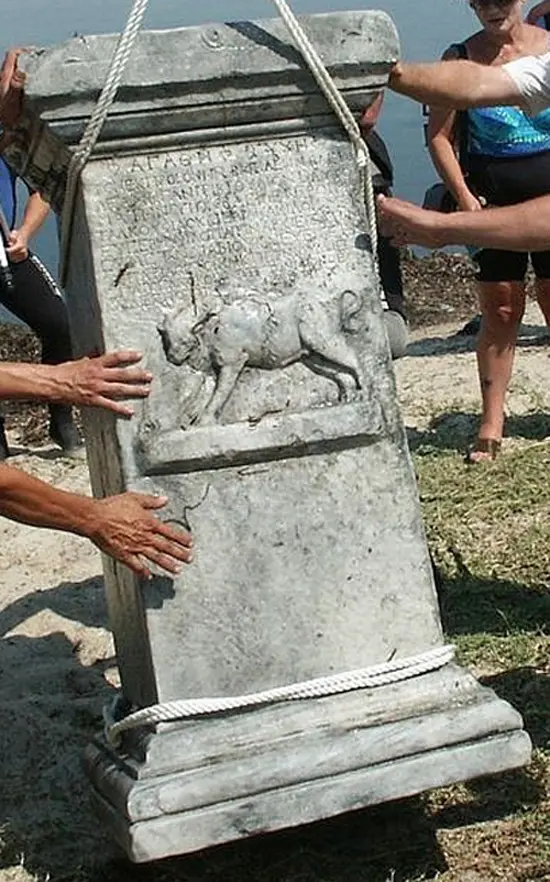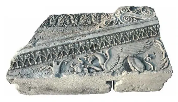 法纳戈里亚出土的非常重要的石碑,约前五世纪,石碑记录了建立者以及象征爱奥尼亚的狮子