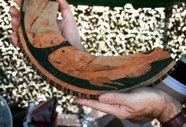 典型的古希腊双耳陶罐绘图残片,被发现于法纳戈里亚