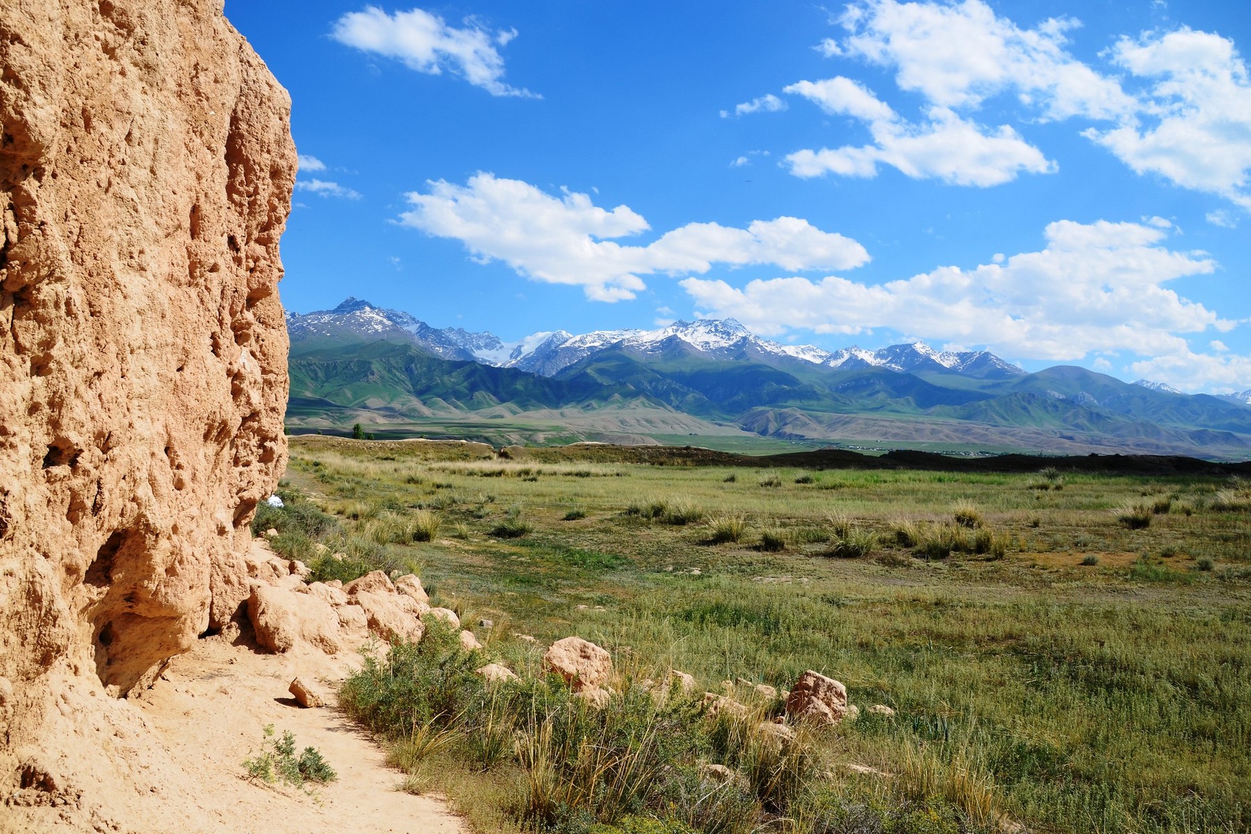 Koshoi Korgon lies about 2 kilometers southeast of the village of Kara-Suu. To reach the citadel, take a left turn after passing the Kara-Suu mosque and war memorial, then continue to the end of the road. The ruins lie in a field to the right, where farmers still tend to their crops. Koshoi Korgon makes for an excellent additional stop if you’re traveling to destinations like Chatyr Kul, Kel Suu, or Tash Rabat.
