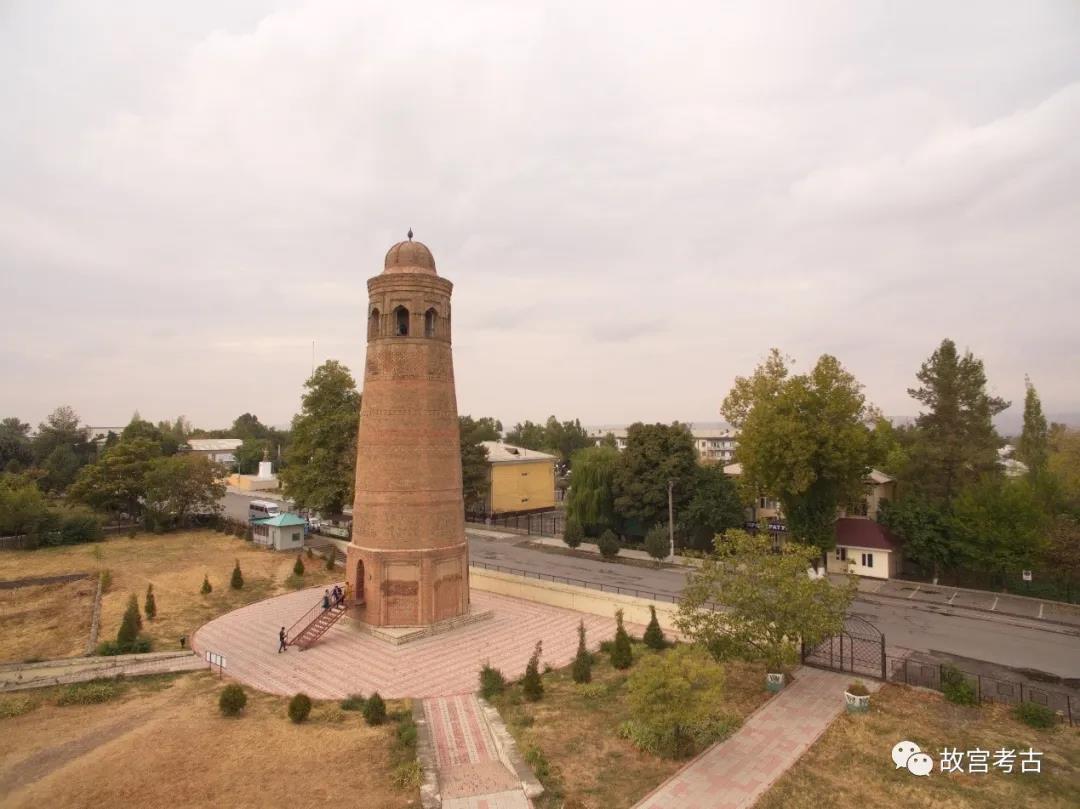 宣礼塔高24米,直径19米,与布拉纳的宣礼塔是仅存的两座喀喇汗汗国时期的宣礼塔,该塔的八面体塔基、塔的圆顶和塔身的砖雕十分繁复(图三十)。