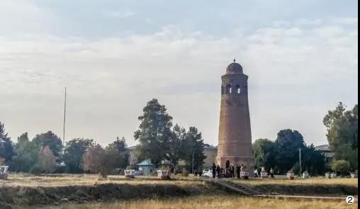 乌兹根 乌兹根遗址位于费尔干纳盆地的东部、乌兹根市中心偏南,属奥什州,距离奥什市约 56 公里。遗址现存有喀喇汗王朝时期的陵墓和宣礼塔。陵墓由三座砖砌建筑构成,长 30米,宽 13 米,高 10 米,埋葬着喀喇汗王朝的贵族。宣礼塔修建于 11 世纪,原高 44 米,后在地震中坍塌一半,1923 年得到修复,现存部分高 27.4 米。陵墓和宣礼塔外墙皆用红砖雕刻复杂纹饰,为伊斯兰风格。