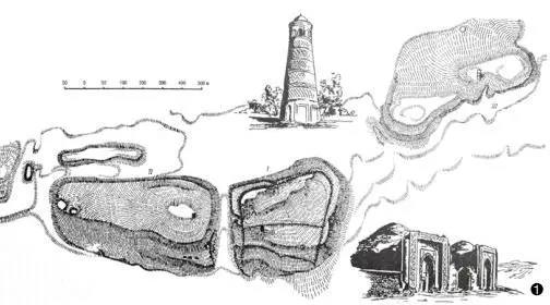 图二十八 乌兹根宣礼塔、陵墓航拍