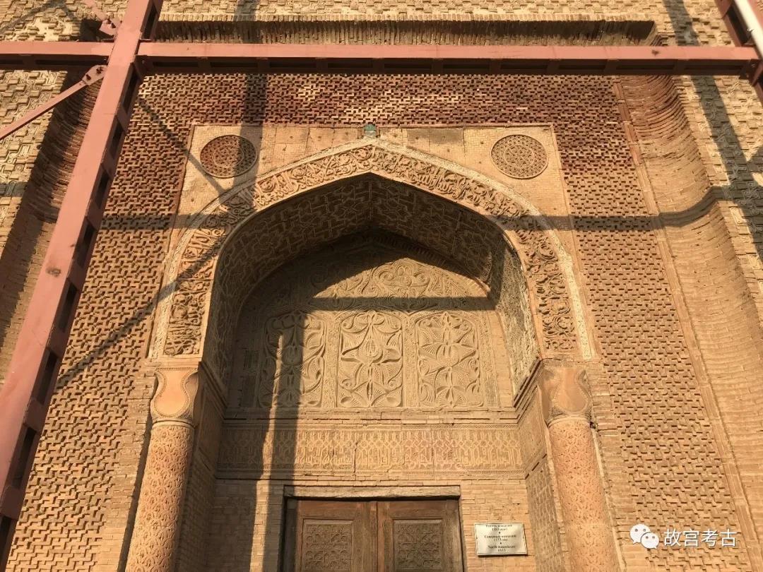 外墙有传统伊斯兰风格称为库菲(Kufi)、纳斯赫(Naskh)、苏斯(Suls)和植物枝条的装饰(图三十六)。这一组建筑在宣礼塔和三座陵墓的建筑和装饰被认为是喀喇汗汗国时期的“建筑装饰品百科全书”,前蒙古时期建筑风格演化的典范。