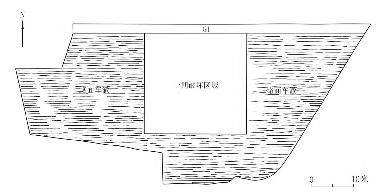 此次在第十二横街北部发现排水沟1条,呈东西向分布,编号G1。