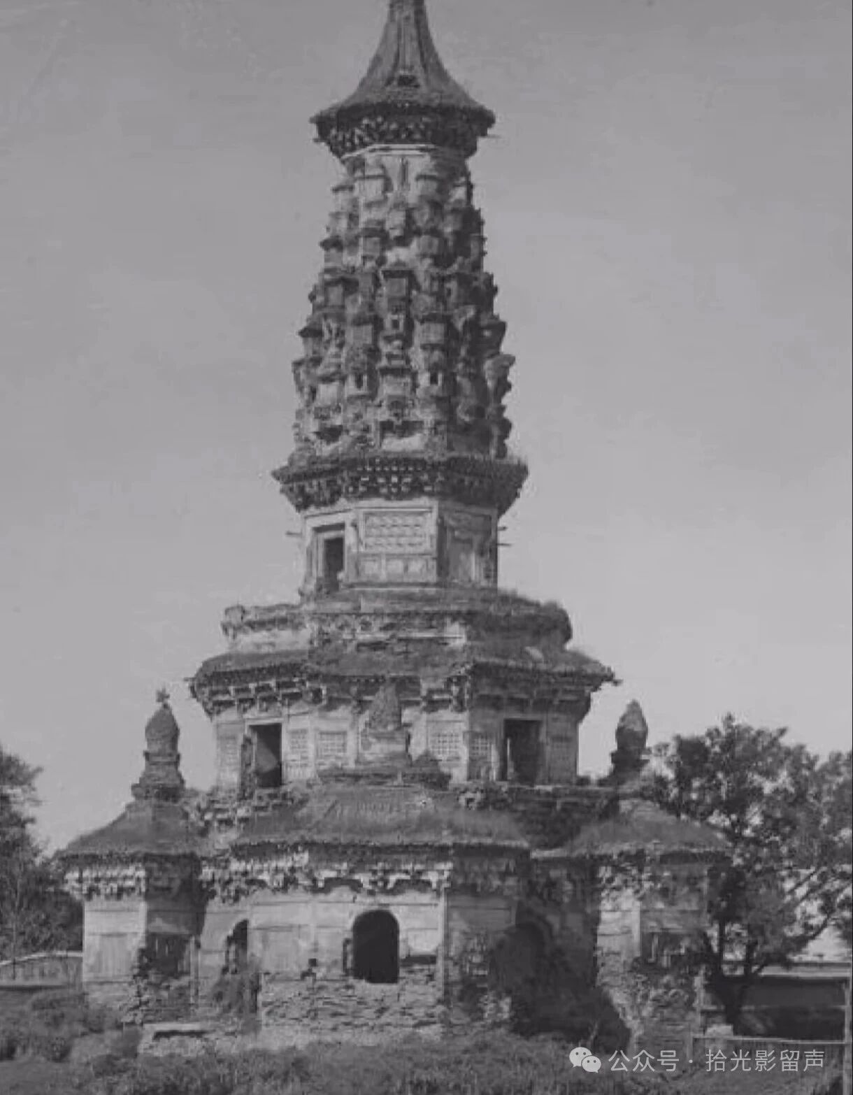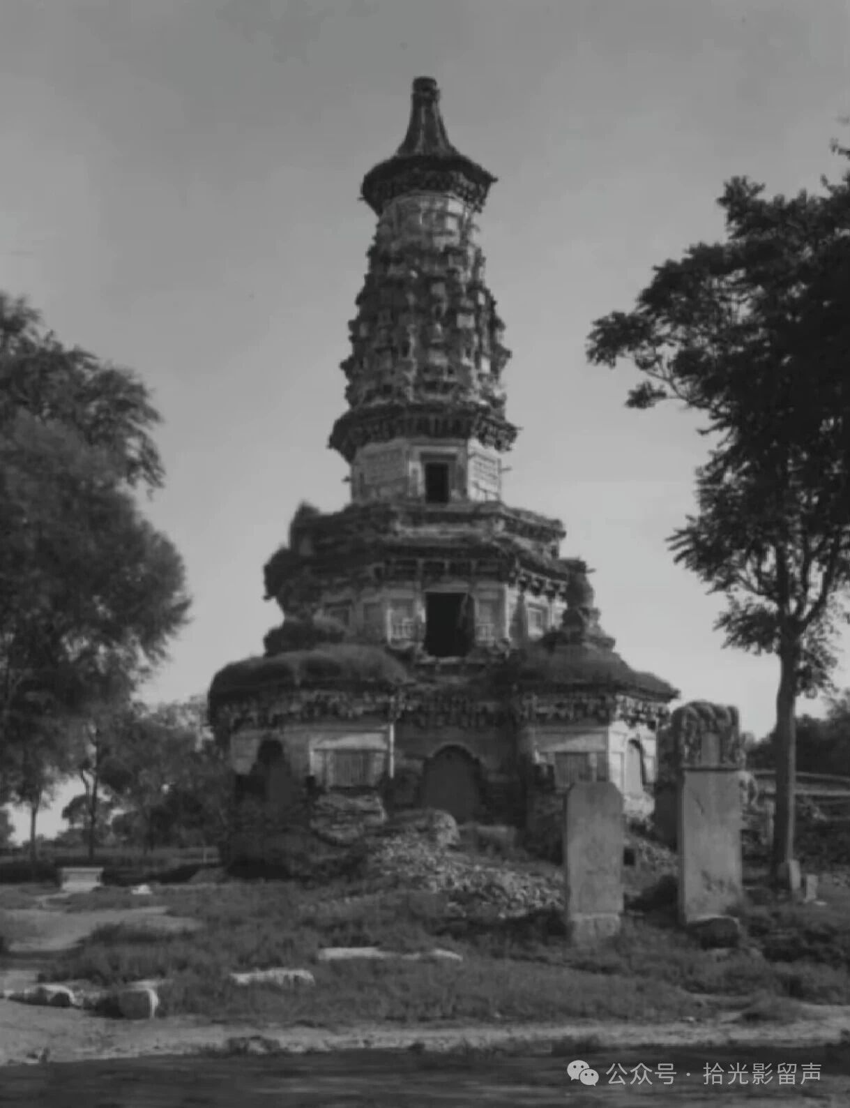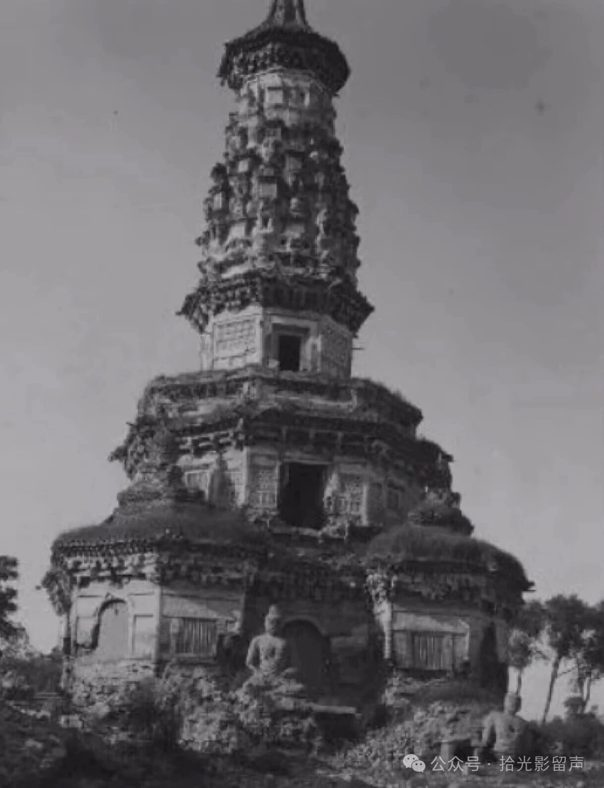 20世纪初:华塔砖石风化、雕像残缺,濒临倾圮,被外国学者记录在影像中。