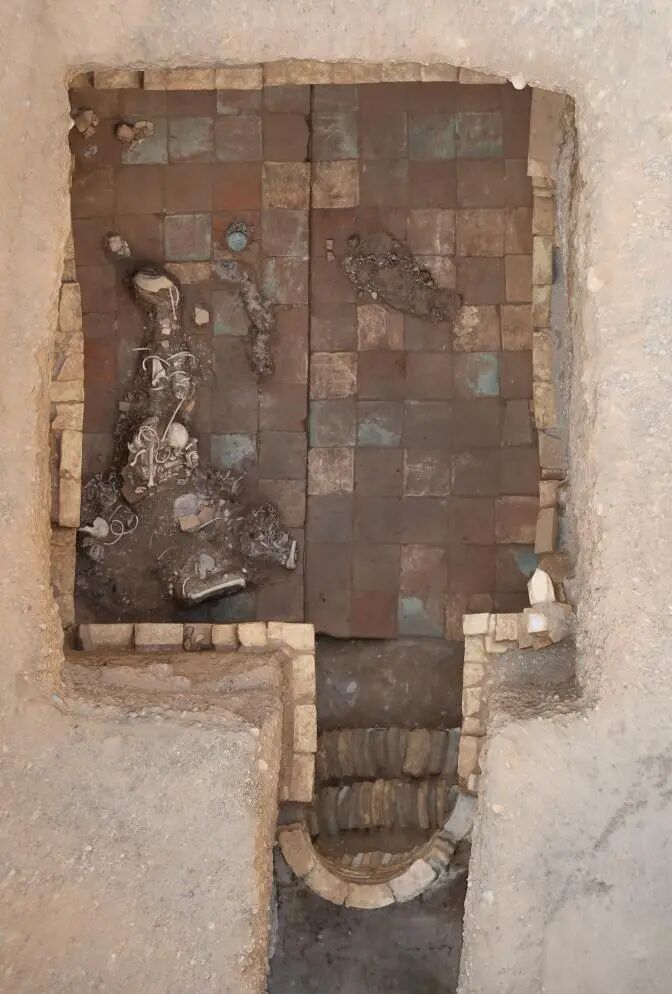 ▲ 库车市友谊路墓群发掘出土的唐代斜坡墓道砖室墓