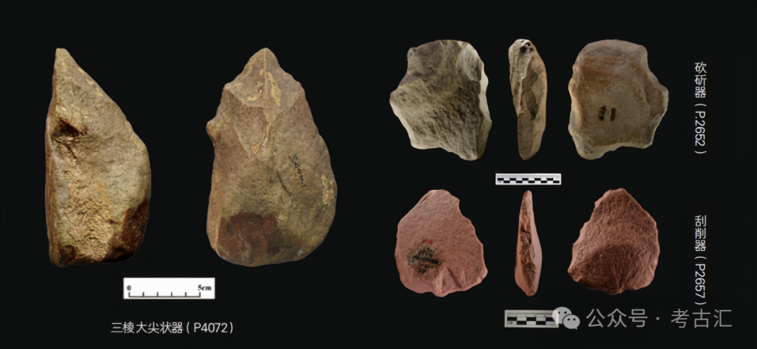 人类文化遗存与动物残骸共存于同一地层中……石器具有十分清晰的人打击的痕迹。据我们初步观察,可看出有如下性质: