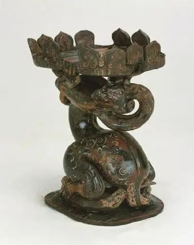 ▲湖北九连墩楚墓出土的这件漆木龙蛇座豆