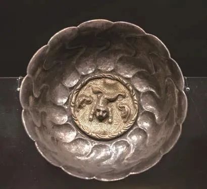 陕西何家村出土的这只鎏金海兽水波纹银碗,正是类似形象