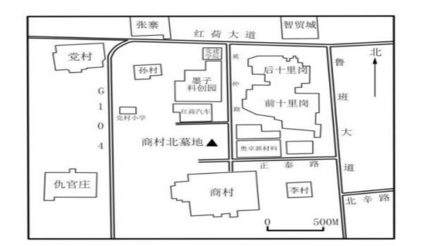 商村北遗址(墓地)位置示意图