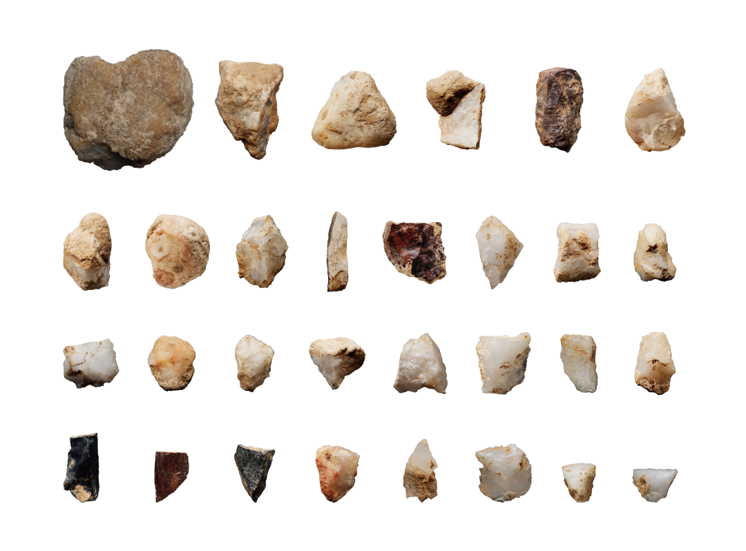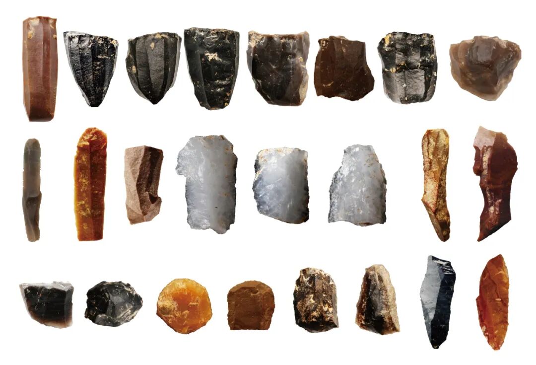 石料利用方面,早段以脉石英为主,中、晚段以脉石英和燧石为主,另见少量赤铁矿、灰岩和砂岩等。石制品以石片和碎屑数量最多,工具组合中刮削器占主导。自中段开始出现预制细石核,石器加工技术发生显著变化。