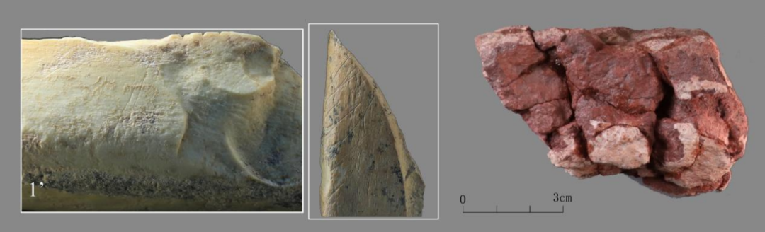 2号地点上文化层刻划的骨片与灼烧的赤铁矿岩块
