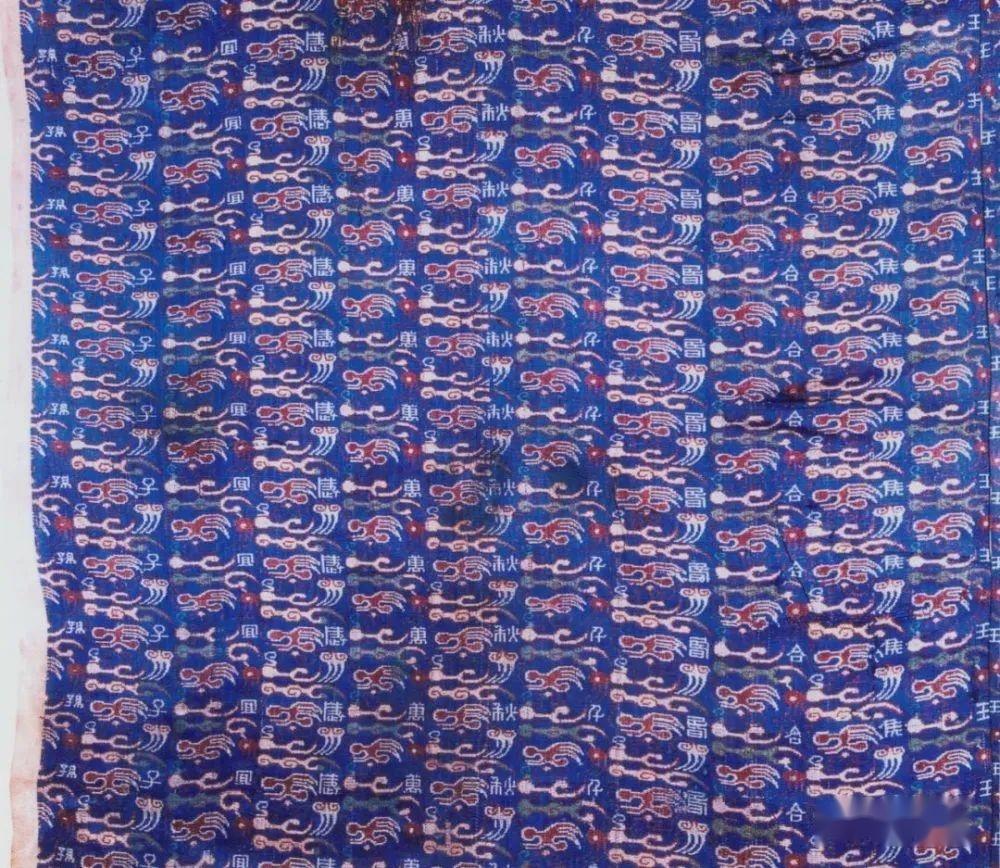 此锦经向显花,是中国内地传统的制造技法。据考证,这应该是内地官办制造作坊为地方王侯量身打造的婚礼专用锦,寓意着“王侯合昏(婚)千秋万岁宜子孙”的美好祝愿。