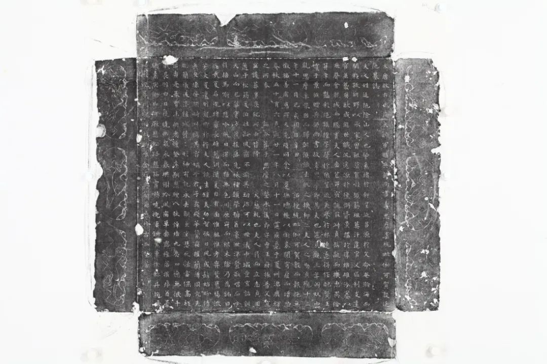 《统毗伽可贺敦延陁墓志》(以下简称《延陁氏墓志》),刊葬于唐贞观二十一年(647),1992年10月出土于陕西礼泉县昭陵乡庄河村西北李思摩墓中,同出的还有《大唐故右武卫大将军赠兵部尚书谥曰顺李君墓志铭并序》(以下简称《李思摩墓志》)和李思摩墓碑。志石为正方形,底边长59厘米,志盖厚7厘米,志盖篆书“唐故李思摩妻统毗伽可贺敦延陀墓志”16字,四杀饰四神(图1);志石边长59厘米,厚10.5厘米,正文楷书,25行,行25字,题“大唐故右武卫大将军赠兵部尚书李思摩妻统毗伽可贺敦延陁墓志并序”,四侧饰十二生肖。(图2)唐贞观二十一年(647)与其夫李思摩合葬,其墓志无撰书者姓名,现藏于西安昭陵博物馆。志文如下: