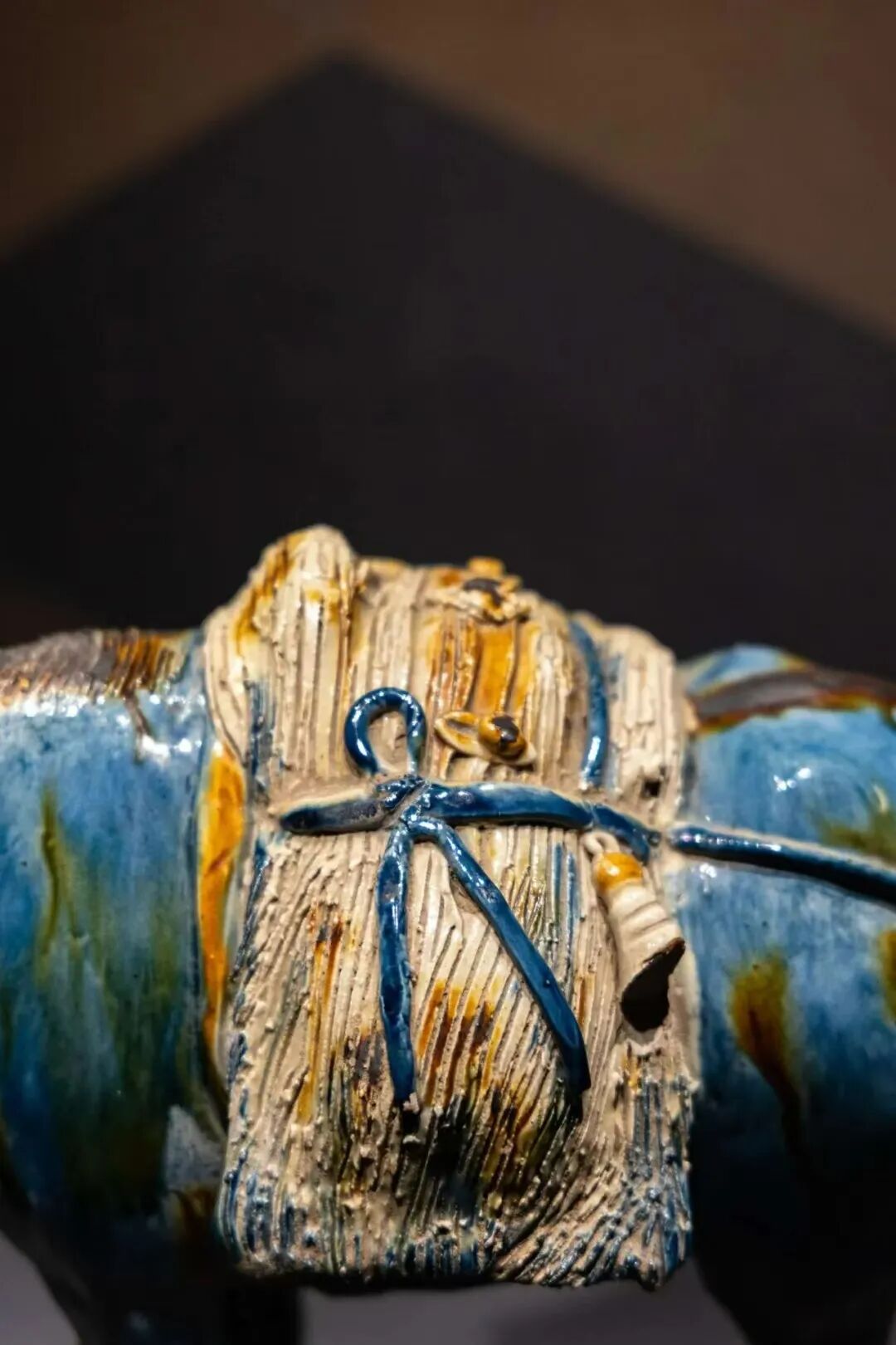 点彩技术是中国传统陶瓷制作中的一种独特工艺。在蓝釉点彩驮骡上,工匠将这一技术运用得恰到好处。蓝色釉料的使用,反映了不同文化间的密切交流。