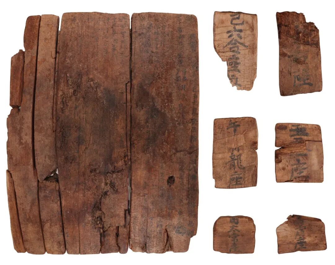 十六国时期墓均坐东朝西,平面呈“甲”字形。流行多人葬,仰身直肢,单人单棺,木棺前高后低呈梯形,以榫卯结构为主,常见河西较为流行的蝴蝶榫。随葬器物以罐、盆、盘、灯、甑、碗等陶器组合为主,14~16件不等。其中,四件陶器表面墨汁书写“麵汲”“米汲”“干麵”等,人骨碳氮同位素结果显示当地饮食结构以小麦、大麦为主,辅以粟、黍,表明晋唐时期高昌地区已实现高度发达的种植业与加工技术。另可见鸠杖(敬老标志)、画押(签字凭证)、云母片(贵重装饰品)等罕有之物,这反映出西域社会对中原礼制与信仰体系的接纳,揭示了边疆地区在人群互动交流过程中持续推进的文化融合,展现了晋唐时期边疆治理之下的文化景观。