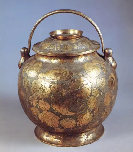 鎏金鹦鹉纹提梁银罐