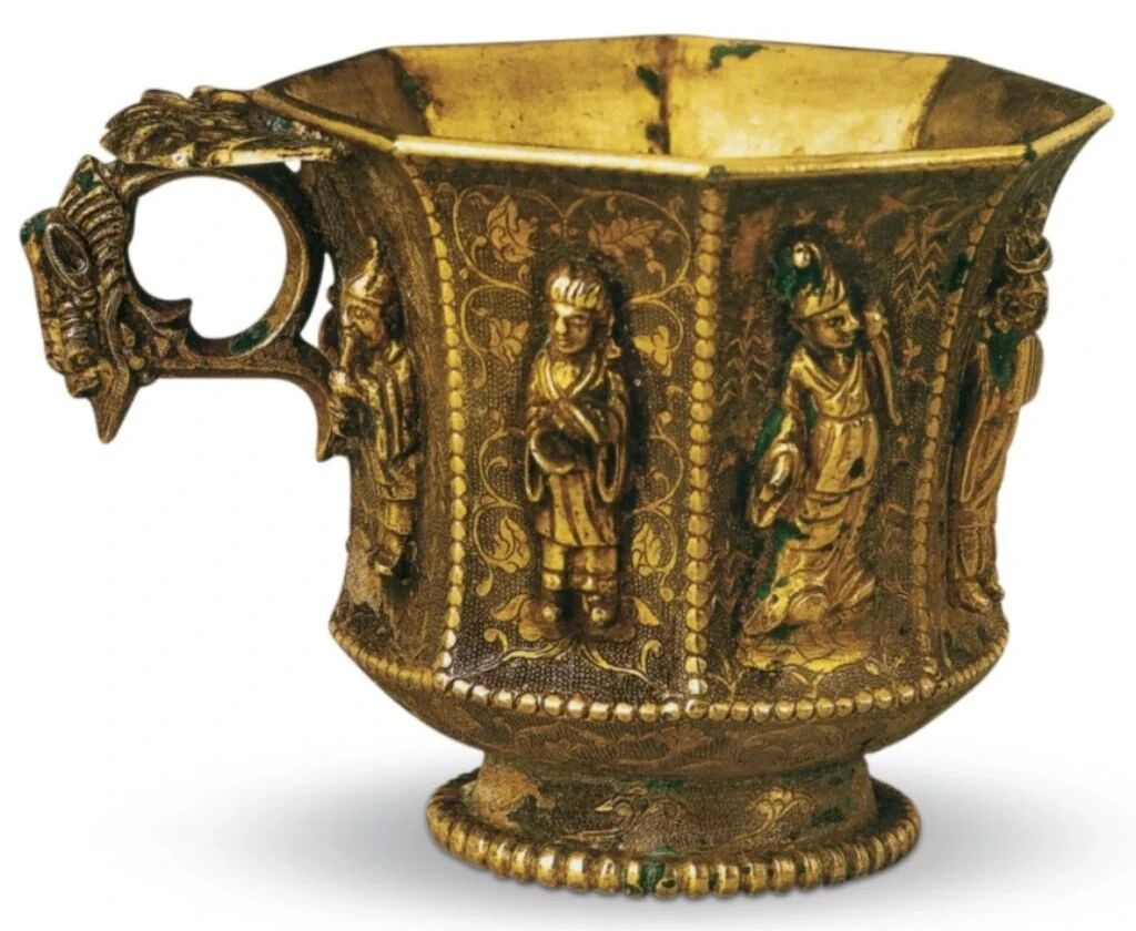 鎏金伎乐纹八棱银杯