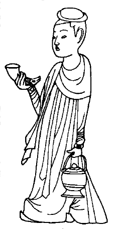 图三 洛阳老城西北西汉墓壁画中的持角杯者