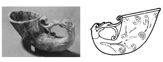 图二 山西潞城战国墓出土铜匜上持角杯