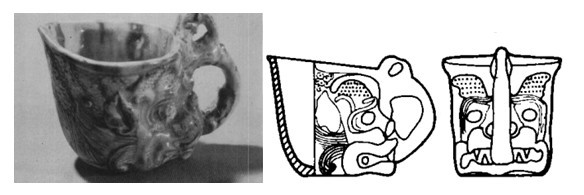图十五 湖北省郧县唐李徽墓出土的三彩龙首杯及其线图