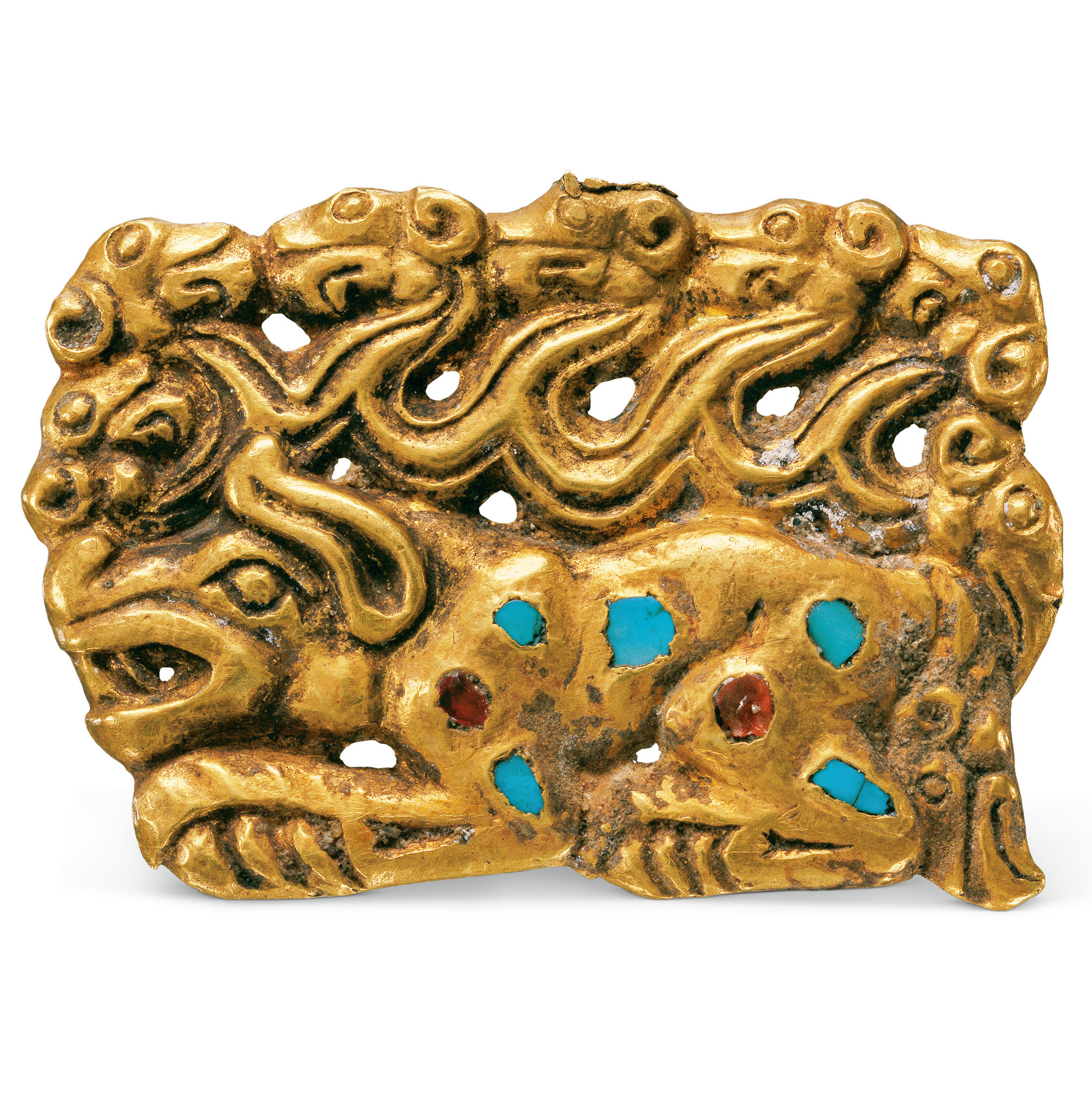 嵌宝石绿松石兽纹金饰牌