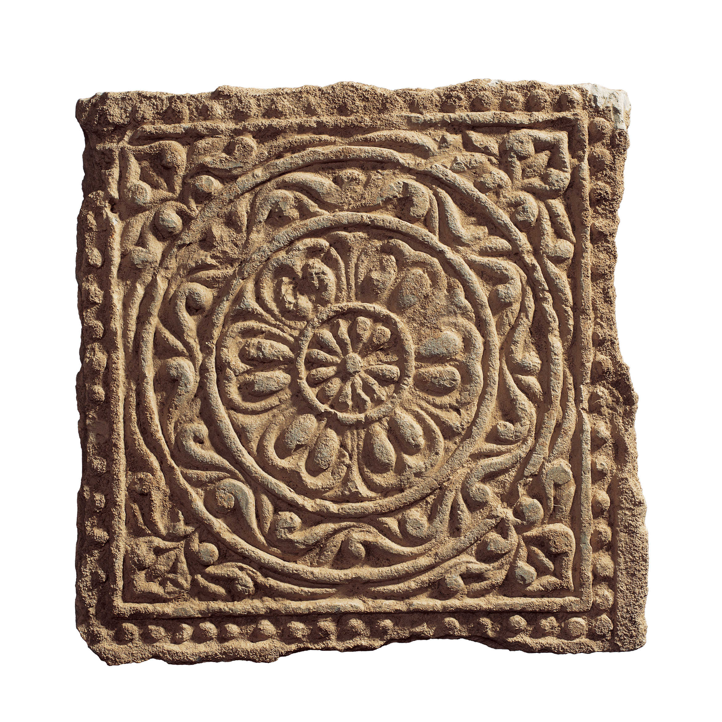 摘要: 莲花纹方砖唐长32.9厘米,宽32.5厘米,厚6厘米1958年陕西省西安市大明宫遗址出土砖面纹饰为模制阳文,以莲花纹为中心,周围环饰蔓枝纹,边际为联珠纹。整个纹饰精细繁缛,令人感受到自由、豪放的盛唐艺术气质。据考证,这种花纹方砖铺于含元殿前升殿街道的梯形台阶上。用砖铺地可以防潮,也更加耐磨。陕西扶风黄堆乡出土过少量西周时的铺地砖。到了战国时 ...