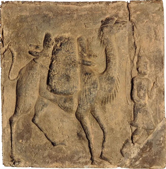 胡人牵驼砖唐|砖长35.8,宽34.5,高6(单位:厘米)敦煌研究院藏(Z00065)