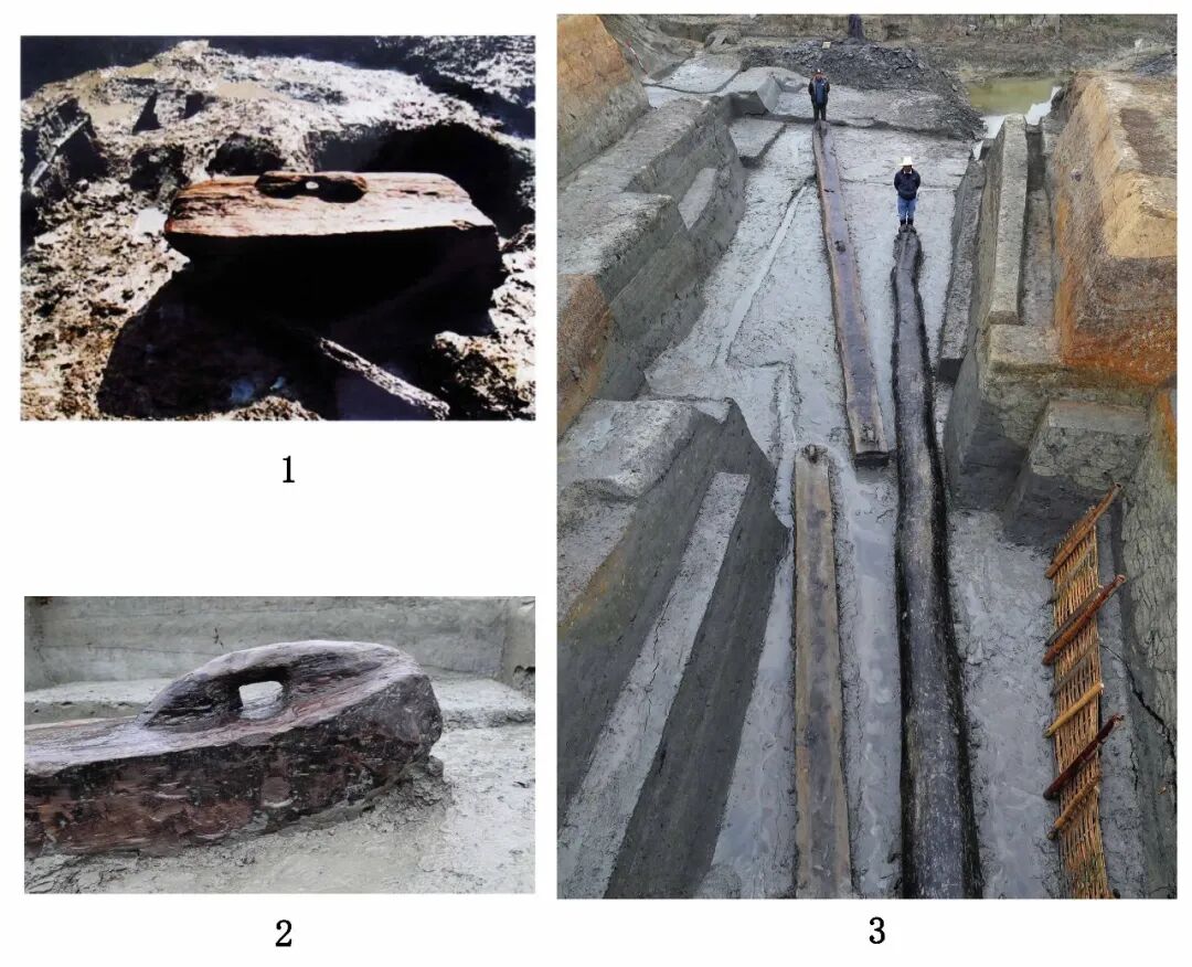 江苏昆山绰墩遗址位于太湖东部的水网平原,总面积约40万平方米,是长江下游发掘面积最大的史前遗址之一。该遗址于1961年被发现,之后开展了多次考古调查和发掘,揭露了马家浜文化、崧泽文化、良渚文化等多个时期的遗存,其中良渚文化的河道内出土一块大木块,发掘者“根据测试鉴定与木块的形状与所处的位置等,判断为先人渡河的工具”(苏州市考古研究所:《昆山绰墩遗址》,文物出版社,2011年)。笔者对此有不同看法。