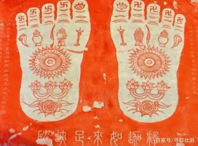 摘要: 20世纪60年代,考古人员曾在玉华寺遗址发现一块刻有佛足印的残破碑石。碑石为青石质,阳刻图纹,残宽72厘米,残高66厘米,复原宽度为88厘米。其上镌刻的足印长50厘米,宽20厘米,足印五趾微张,大脚趾上刻有莲花,其余四趾、掌心均刻有不同的纹饰。碑石左下方残存“匠李天诏”四字。 ... ... ... ...