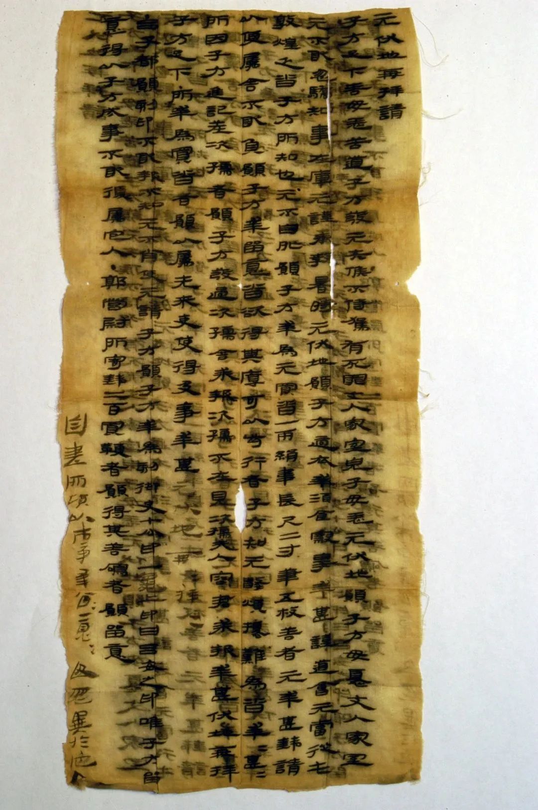 甘肃简牍博物馆有一件考古编号II01143:611的帛书,1990年出土于敦煌悬泉置遗址,为国家一级文物,是“元”写给“子方”的书信,故取名《元致子方书》,帛长23.2厘米,宽10.7厘米,10行,319字。