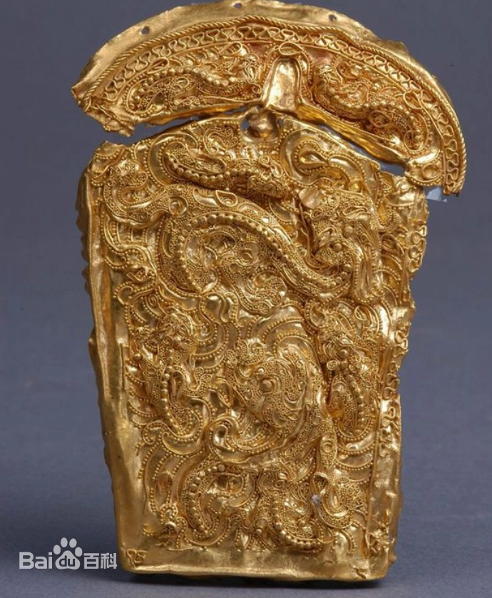 摘要: 带扣的出现可以追溯到春秋晚期,战国时就比较常见了。经过秦汉两代的发展,到两晋时,带扣基本上取代了带钩,不仅成为服饰的重要组成部分,而且在日常生活中也得到了广泛应用。从古到今,带扣都是人们束结腰带的主要用具,在古代,其材质主要有金、银、铜、玉等。 天水市博物馆馆藏的国家一级文物东汉掐丝焊珠蟠螭纹金带扣,长7.7厘米,宽5.4厘米,重42 ...