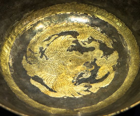 摩羯纹金花银碗