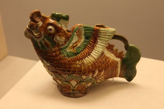 摩羯形三彩陶壶