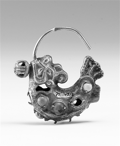 辽代嵌绿松石摩羯鱼金耳坠。 来源:上海博物馆网站