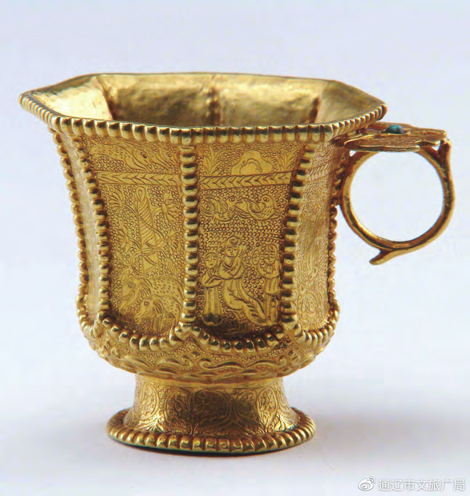分类: 中文 遗产信息库 丝路文物 关键词:人物纹,八棱,金杯