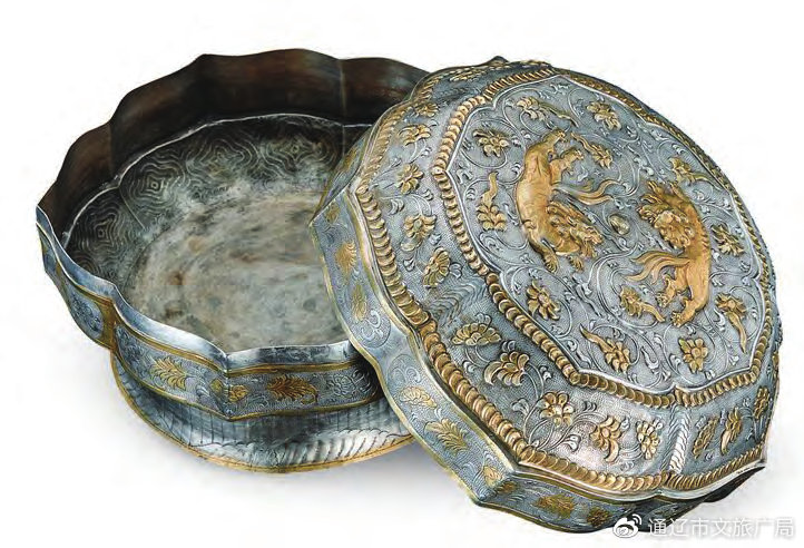 分类: 中文 遗产信息库 丝路文物 关键词:银鎏金,双狮,五曲,花式盒