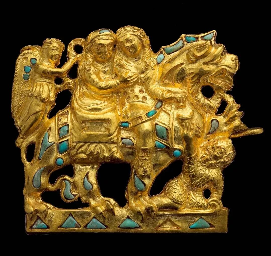 分类: 中文 遗产信息库 丝路文物 关键词:狄奥尼索斯,阿里阿德涅,扣饰