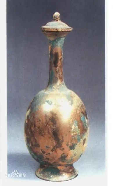 唐代佛教随葬品。1985年5月出土于陕西临潼庆山寺遗址的塔基下。高18.5,口径3,底径5厘米。喇叭形口和圈足,细颈,盖形似蘑菇,顶有圆球状钮,通体无纹饰。现藏西安市临潼博物馆。