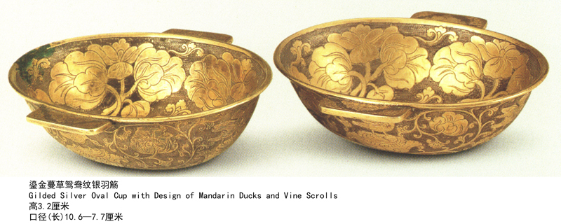 鎏金蔓草鸳鸯纹银羽觞