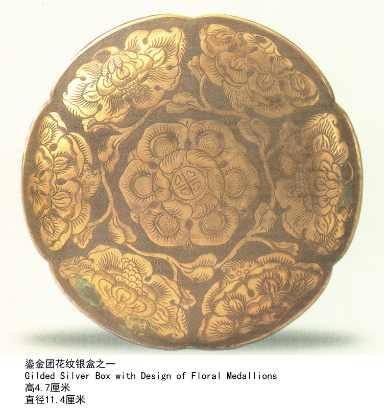 鎏金团花纹银盒