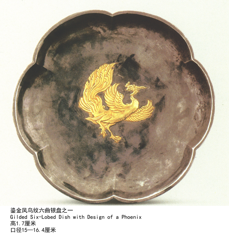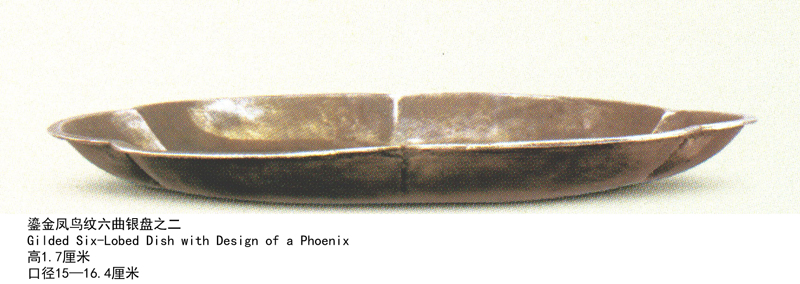 鎏金凤鸟纹六曲银盘