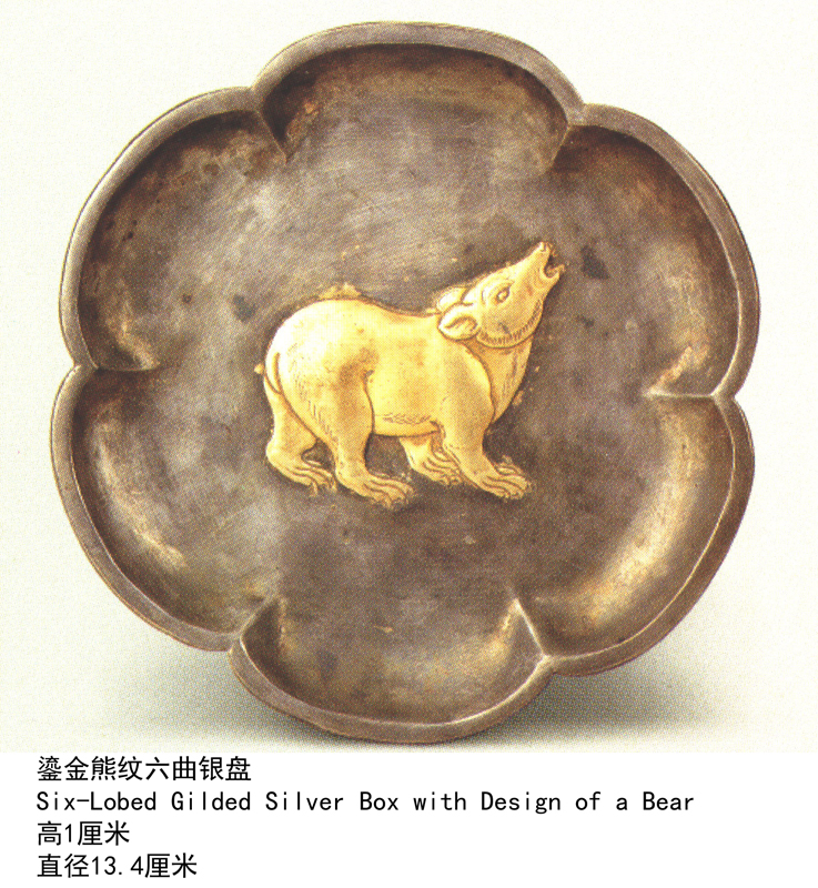 鎏金熊纹六曲银盘