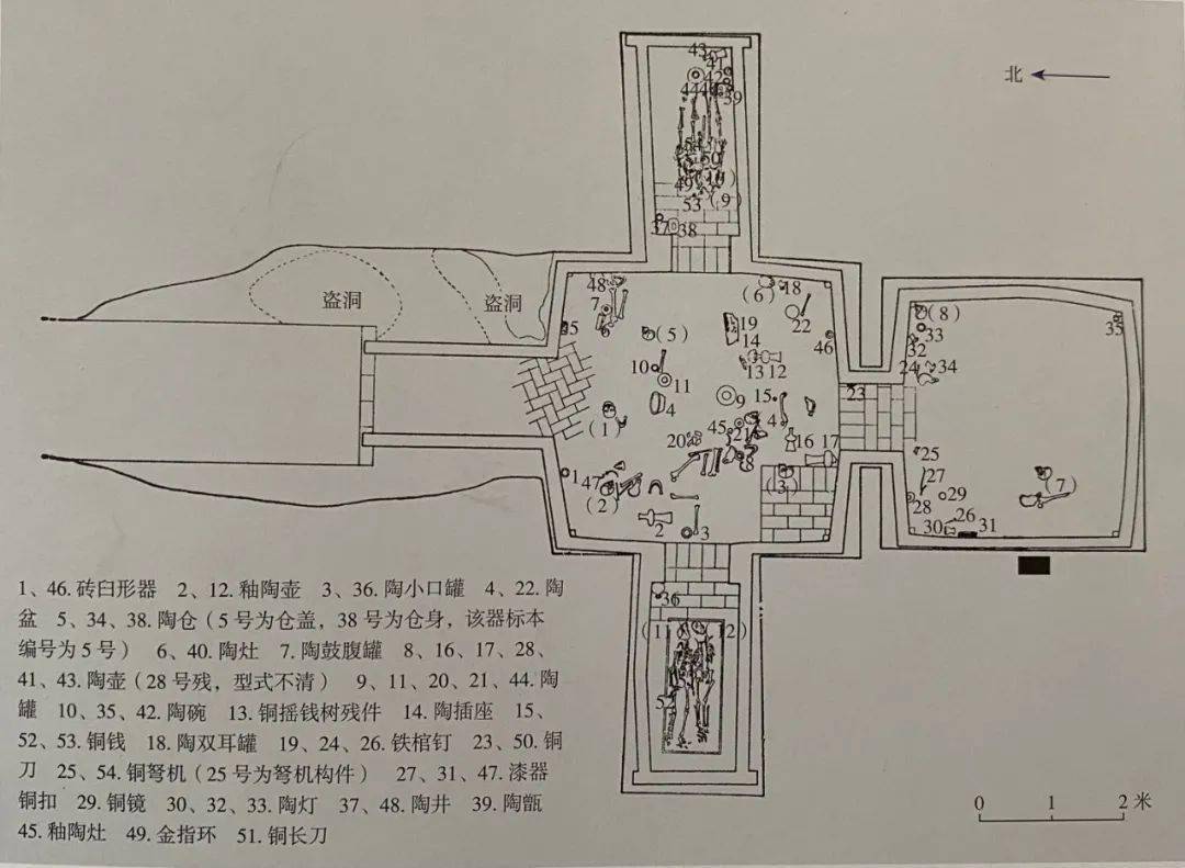砖室墓因遭到盗扰,葬式大多已失去原貌,个别未经扰乱的遗骸葬式以仰身直肢葬为主,其次二次葬,俯身屈肢和侧身屈肢葬较少见。