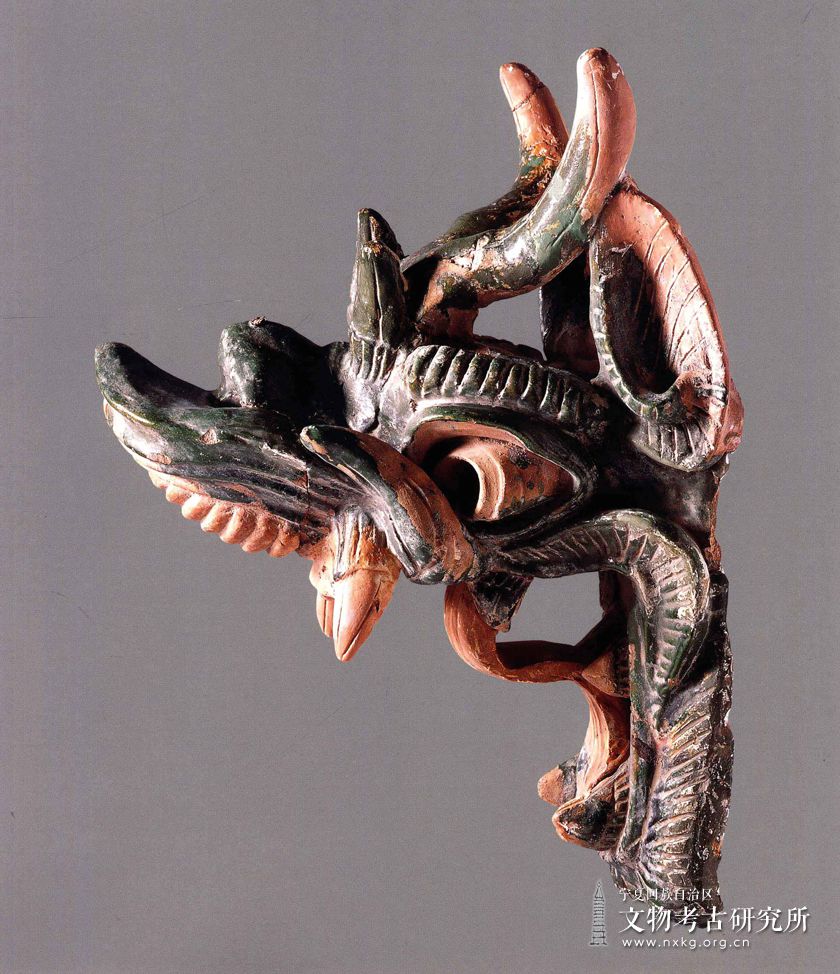西夏陵出土的建筑构件以素陶制品为最多,琉璃釉陶制品占一定比例,瓷质的次之,石质的数量最少。出土的建筑构件中,有普通常见的砖、瓦等;有以装饰为目的的鸱吻、脊兽等;有槽心瓦、白瓷瓦等特殊材质的制品;也有螭首、柱础等部分石质构件。