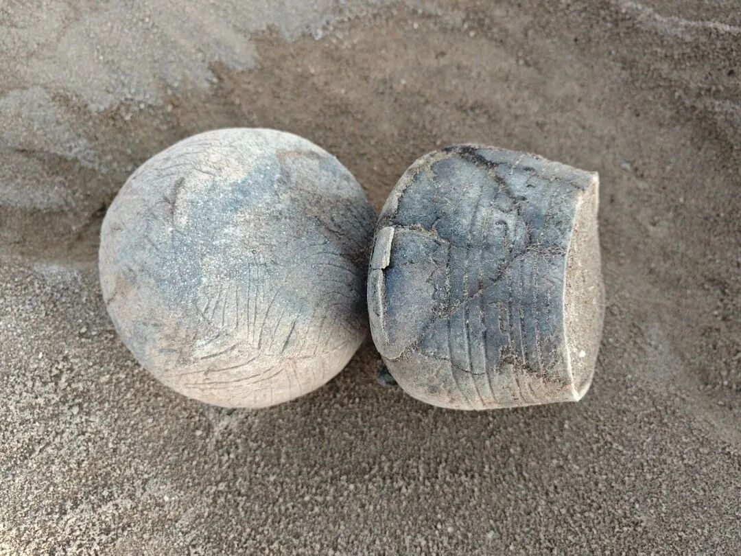 神头上湾遗址地处台山市海宴镇滨海沙堤,属典型沙堤 — 潟湖型沙丘遗址,东南朝向南海,是先民 “向海而生” 的重要见证。因长期取沙破坏,经国家文物局批准,考古队于 2025 年开展抢救性发掘,发掘面积 300 平方米。