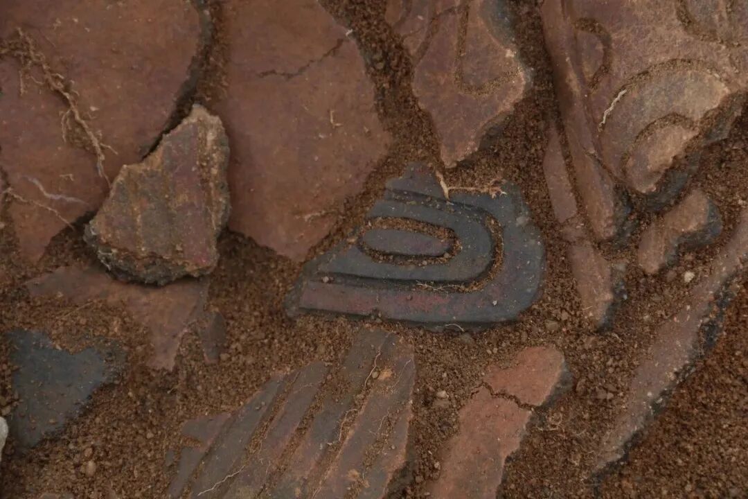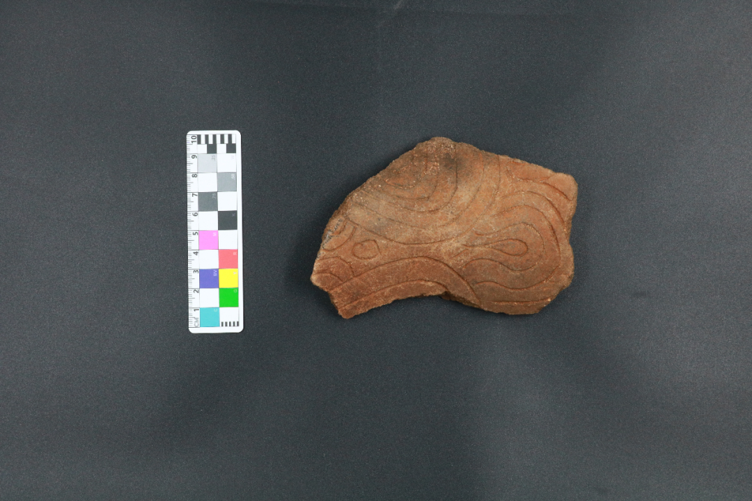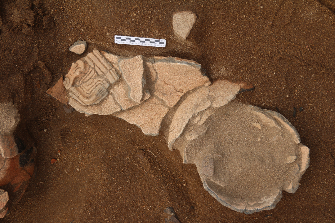 ▲ 新石器时代活动面出土刻划纹陶盖残件