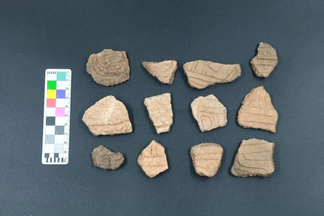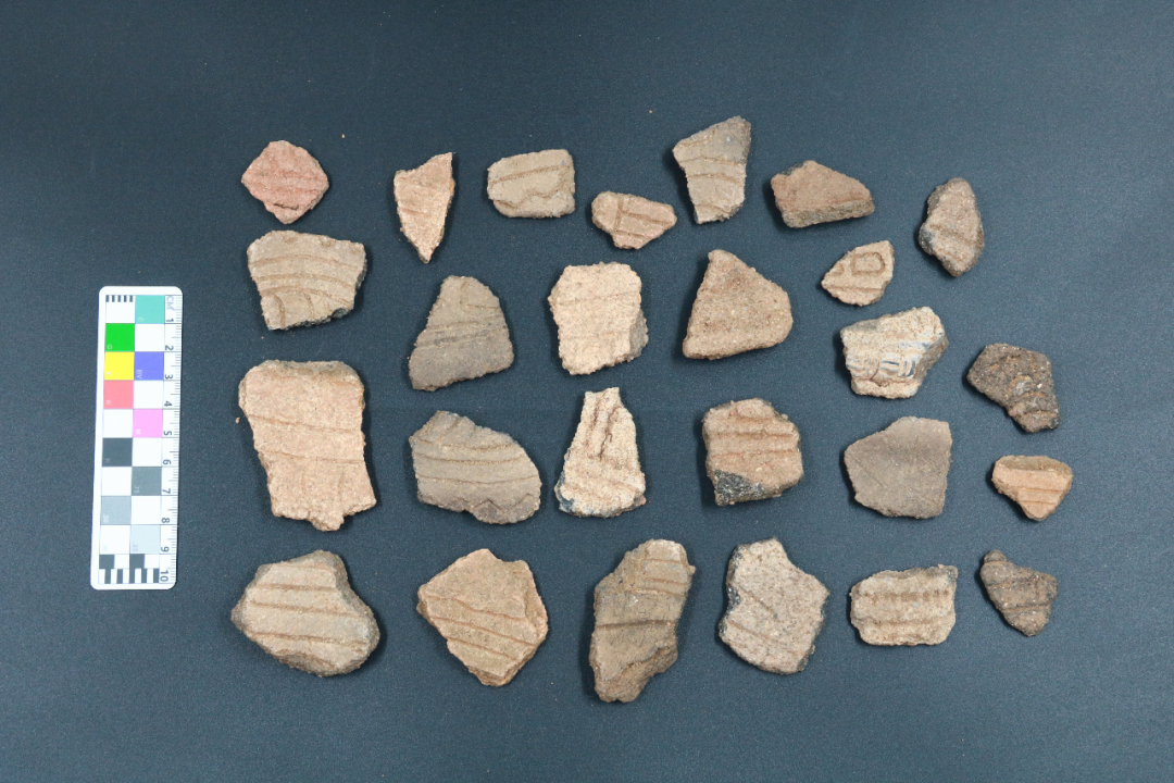 ▲ 新石器时代活动面出土刻划纹陶片