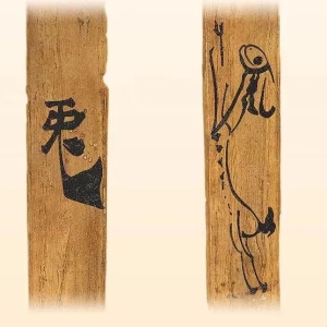 文物简介木简一枚(出土编号73EJT10∶16),汉代,松木,长12.5、宽1.2、厚0.2厘米,略残。1973年出土于汉代肩水金关遗址。简上部用标准隶书书有一“兔”字,简下部以墨线条绘有一只奔兔。兔子圆头鼓睛、长耳、短尾,四肢腾空,作奔跑状。现藏甘肃简牍博物馆。●关于甘肃简牍博物馆面向公众开放的公告●朱建军 || 简牍里的中国文化(上)●朱建军 || 简牍里 ...